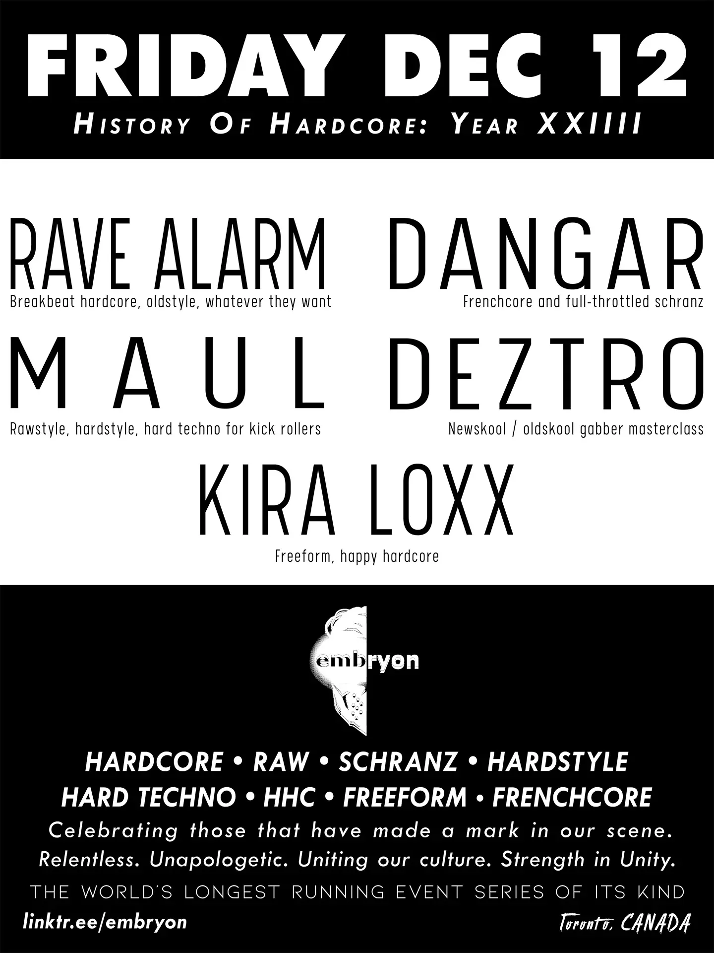 HISTORY OF HARDCORE - Friday, December 12th, 9:30PM til 3 AM - Location TBA
